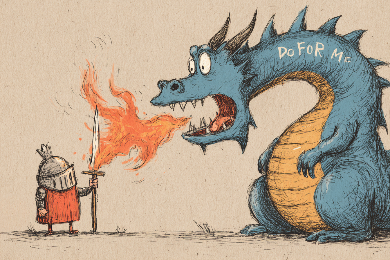 And oh what a foe this new beast is. Any skill you've dreamed of, it's already a master at. A master willing and waiting to do the work for you and produce the result you dreamed of. But in order to learn for yourself you have to constantly reject its help. Instead, choosing to spend hours of work and lower quality output as you slowly gain competence. As if you're struggling to walk on a summer's day, while this beast is offering you a free car ride with AC each step of the way.